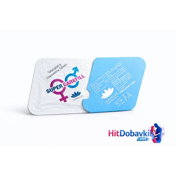 SUPER CAREFILL 80 mg е нов, революционен и изключително ефективен продукт, комбиниращ действието на Cialis / Generic Tadalafil (за много по-твърда, стабилна и продължителна ерекция, продължаваща повече от 36 часа) и Dapoxetine (за лечение на преждевременна еякулация и бързо изпразване).
